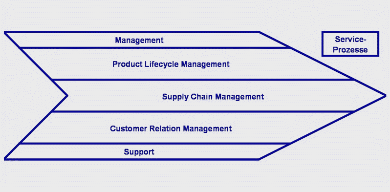 Jede Phase eines Produkt-Lebenszyklus bietet Chancen für Service-Geschäfte. SERVE IN unterscheidet dabei bis zu zehn Phasen, für die spezifische Service-Produkte entwickelt werden können. 1 Inbetriebnahme 2 Schulung 3 Reparatur 4 Prävention 5 Produktivität 6 Qualität 7 Redimensionierung 8 Umnutzung 9 Recycling 10 Entsorgung |